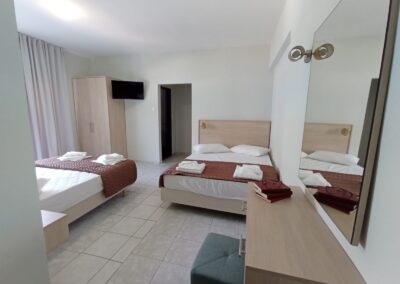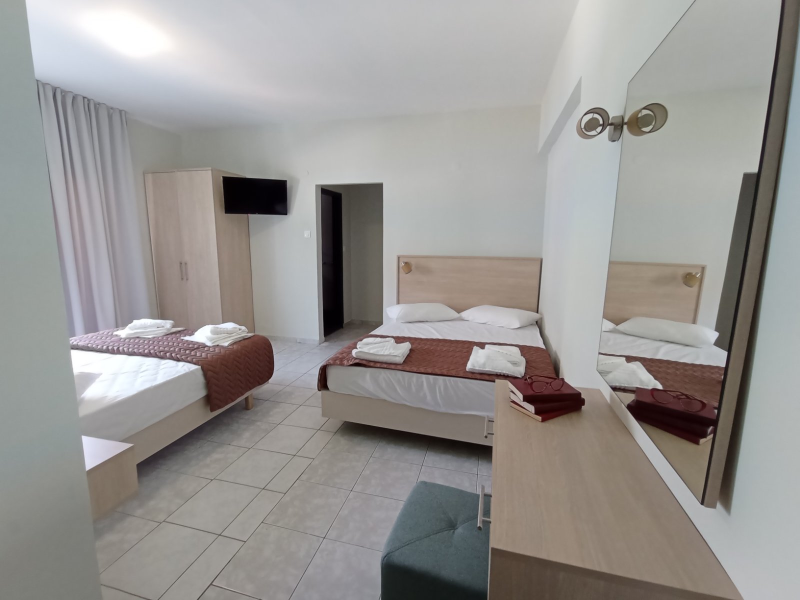 Реновираните соби – ЕЛИА, нудат пријатен престој со капацитет на сместување до 4 лица во трокреветни и четворокреветни соби. Собите располагаат со сопствен тоалет, крпи, ТВ, клима уред и Wi-Fi конекција (бесплатно), балкон каде можете да уживате во Вашето кафе и да се релаксирате.