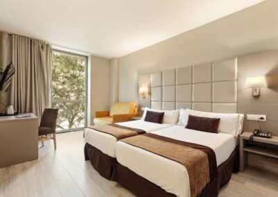 Сместен во Барселона, веднаш на самата плажа и на само неколку метри од меѓународниот конгресен центар CCIB, хотелот располага со 177 соби со директна телефонска линија, интернет конекција, сателитска телевизија, клима уред, комплетно опремени бањи со када или туш и фен за коса. Дел од собите се адаптирани за лица со попреченост, а некои имаат и поглед кон морето.