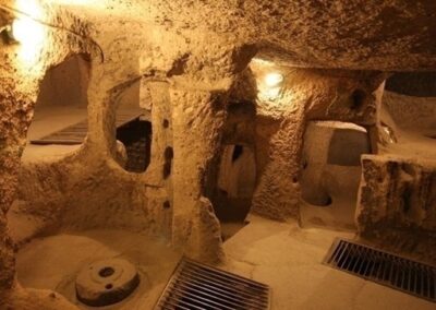 Потоа го посетуваме подземниот град Кајмакли, издлабен во вулкански камен во 7 век п.н.е, еден од најголемите и најдобро сочувани подземни градови на Кападокија, откриени се 7 ката под земјата. Истиот е поврзан со подземниот град Деринкују со подземен тунел долг 9 км….