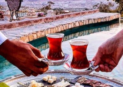 ТУРСКА ВЕЧЕР : Во вечерните часови одиме на Турска вечер со традиционални фолклорни танци од разни страни на Турција и секако ориентален стомачен танц, во автентичен, пештерски амбиент од Кападокија како од времето на Хититите, старите жители на Кападокија. Богатото шоу го следиме со типично турско мезе, вкусна вечера по ваш избор и неограничена дегустација на домашни пијалоци: вино, турска ракија, водка, пиво, сокови.