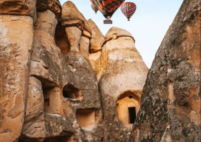 ЛЕТ СО БАЛОН: од долините пред „Музејот на отворено-Гореме„ во мугрите, пред волшебното изгрејсонце на Кападокија, можност за лет со балон над „самовилините оџаци„ на Кападокија. Оваа авантура никогаш нема да ја заборавите… уживајте во убавината и возбудата додека балонот нежно полетува. Слушајте го татнежот на печката што го загрева воздухот во балонот. Восхитувајте се на неверојатниот поглед на повеќе од 100 балони во лет, и секако…чудесното изгрејсонце. Во еден момент балонот ве издига 700 -1000 метри, поглед од кој ви застанува здивот. На крај на летот добивате сертификат за летање со балонот. Враќање во хотел.