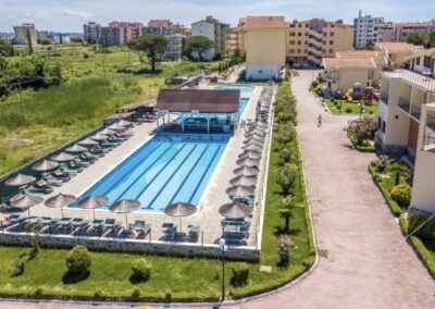 Комплексот располага со 300 соби: двокреветни, четирикреветни и петкреветни. Во секоја соба има Wi-Fi. Оддалечен од плажа 150м.(сопствена плажа)