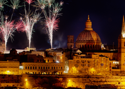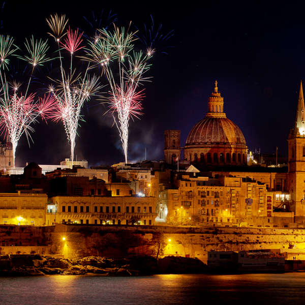 Главниот град на Малта, Валета, нуди спектакуларни новогодишни прослави. Плоштадот на Републиката и Св.Џорџ е центар за забава со концерти, светлосни шоуа и величествени огномети што го осветлуваат небото над прекрасната Валета. Луѓето од различни делови на Малта и светот се собираат овде за да го дочекаат доаѓањето на новата година во главниот град. Тука е и Светилникот на островот Гозо: Романтичен дочек под ѕвездите. Островот Гозо, дел од малтешкиот архипелаг, нуди романтично добредојде на Новата година. Светилникот на островот Гозо е омилено место за средба на полноќ на паровите и љубовниците под ведрото медитеранско небо. Огнометот од блиските острови додава магија на овој момент. Традиционални малтешки новогодишни јадења – Малтешката кујна нуди вкусни новогодишни специјалитети. За оваа празнична ноќ често се подготвуваат јадења како „Фенката“ (јадење зајак) и „Имќарун“ (посебен вид паста). Исто така, традиционалните малтешки колачи и слатки се незаменлив дел од празничните оброци.