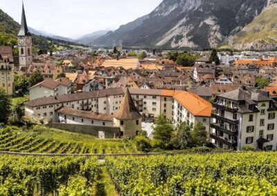 5000 години. Центарот на градот е забранет за возила и е еден од најдобро сочуваните во Швајцарија каде одлично