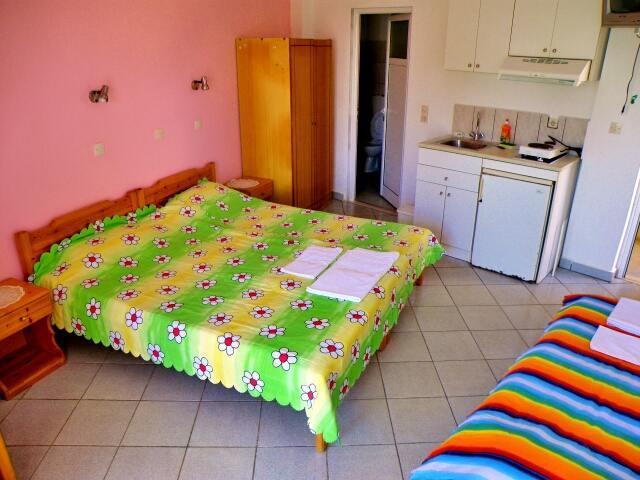 Четирикреветните студиа се со четири единечни кревети.Секое студио е опремено со сопствена кујна,сопствено купатило,балкон и клима уред (се доплаќа).