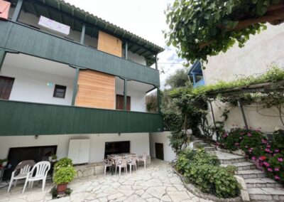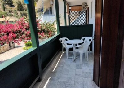 Villa Argiro е објект кој се наоѓа во непосредна близина на другата вила од нашата понуда, за сместување во Агиос Никитас. Во својот состав таа расолага со неколку убаво опремени двокреветни студиа, сите со сопствен тоалет, балкон, ТВ и клима уред, како и мини кујна за припрема на топли напитоци и за чување на продукти. Готвењето во студиата не е дозволено, па за таа потреба на гостите им е на располагање летна кујна во дворот на објектот, во која има инсталации на уреди за секое студио пооделно. Опремена со потребните апарати за готвење и печење, како и со ѕидана скара и фурна, вилата Аргиро, ги обезбедува сите потребни услови за одлично организиран престој во текот на летниот одмор. Оддалеченост од плажа 300 метри.