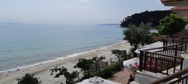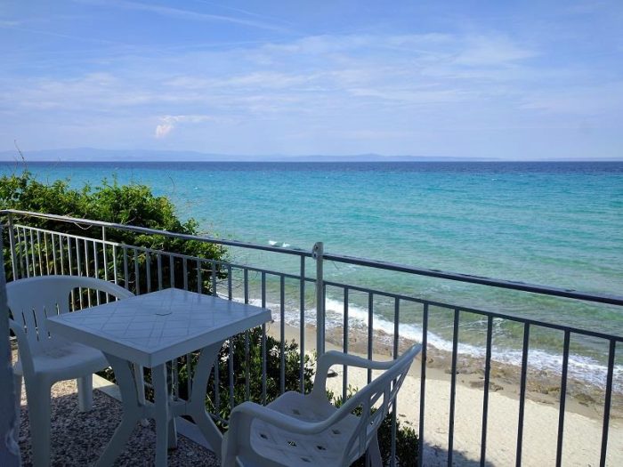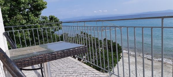 Студиото се наоѓа на 1 кат и излегува на тераса на која има маса со столици. Студиото е со поглед на море. На плажата имате лежалки и чадор кои се користат со нарачка на пијалок.