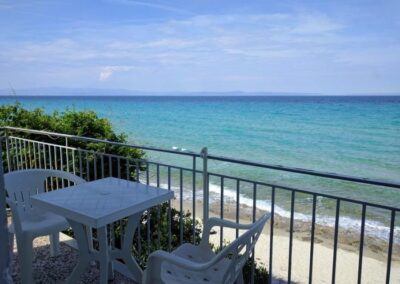 Студиото се наоѓа на прв кат и излегува на тераса на која има маса со столици. Студиото е со поглед на море. На плажата имате лежалки и чадор кои се користат со нарачка на пијалок.