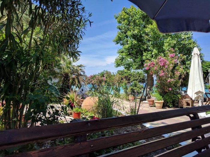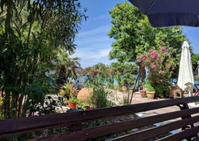 Студиото се наоѓа на приземје и излегува на убав и голем двор на која има маса со столици. Студиото е со поглед на море. На плажата имате лежалки и чадор кои се користат со нарачка на пијалок.