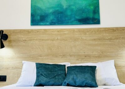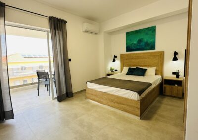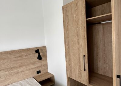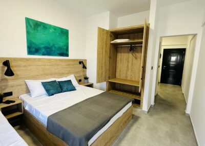 • АПП 1/2+1– еден брачен кревет во посебна соба, опремена кујна со дополнително легло (фотелја на спуштање), ТВ, бања, тераса.