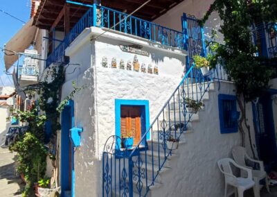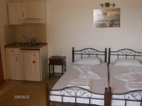 Вила “Spiridoula“ е лоцирана на Мегали Амосна оддалеченост 50 метри од плажа и 5 минути пешки до центарот на градот. Вилата располага со двокреветни и трикреветни студија, четирикреветен апартман и петокреветен дуплекс апартман. Сите соби се со комплетно опремена кујна, клима уред (се доплаќа), WiFi, балкон.