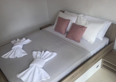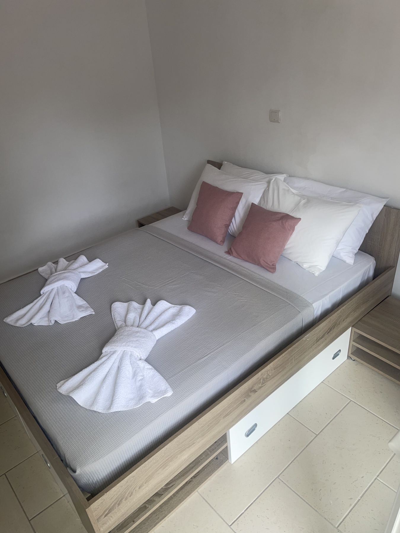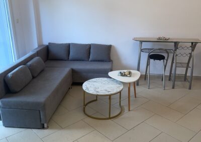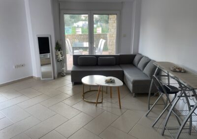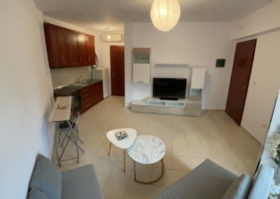 - Едноспален апартман на прв приземје, 1/2+3 апартман со спална со еден двоен кревет, во дневниот престој една аголна гарнитура на отварање и дополнително легло ранџо (максимум капацитет 4возр+1деца или 2возр+3деца)