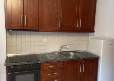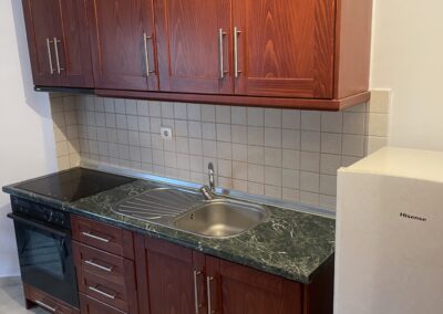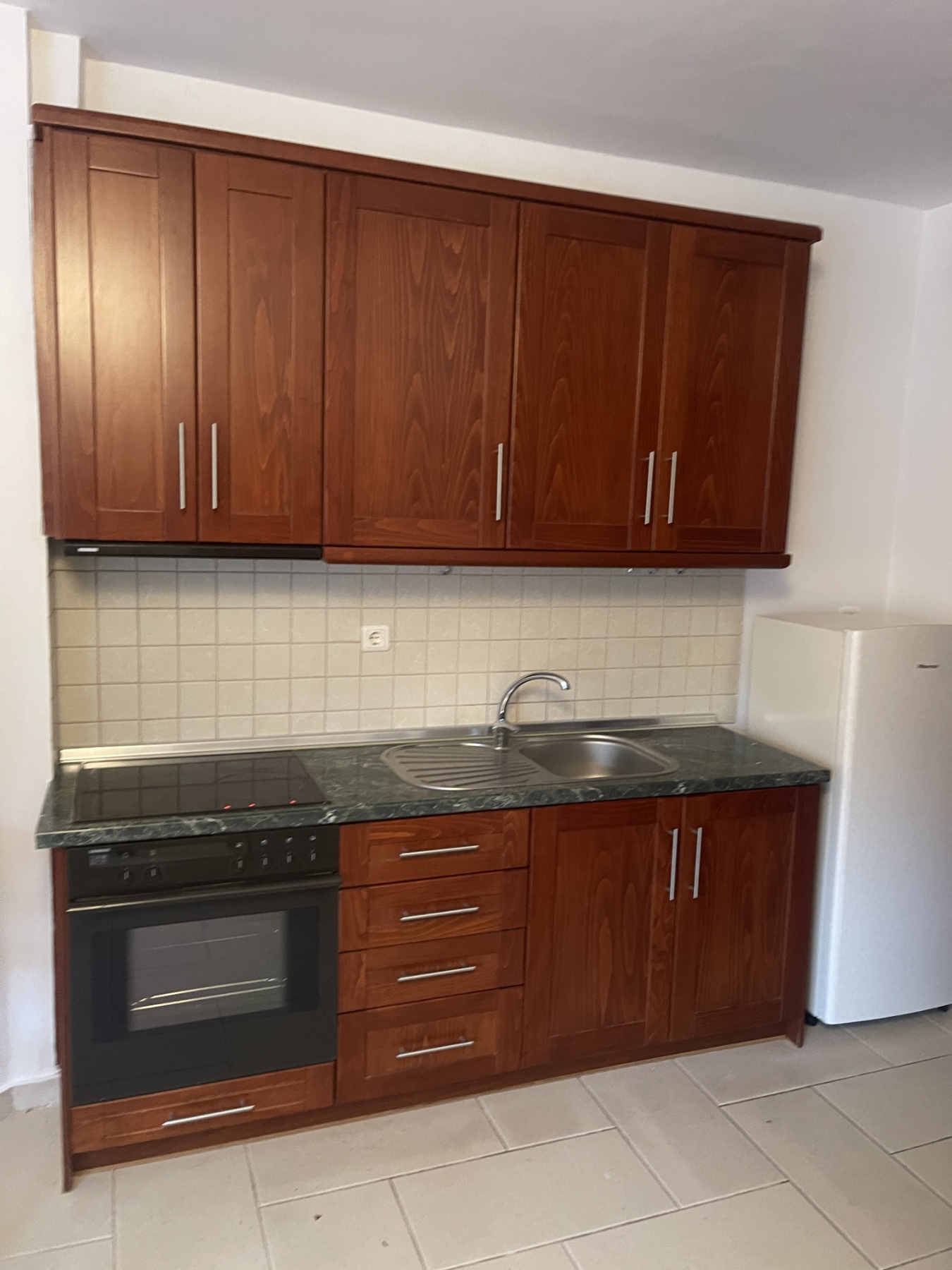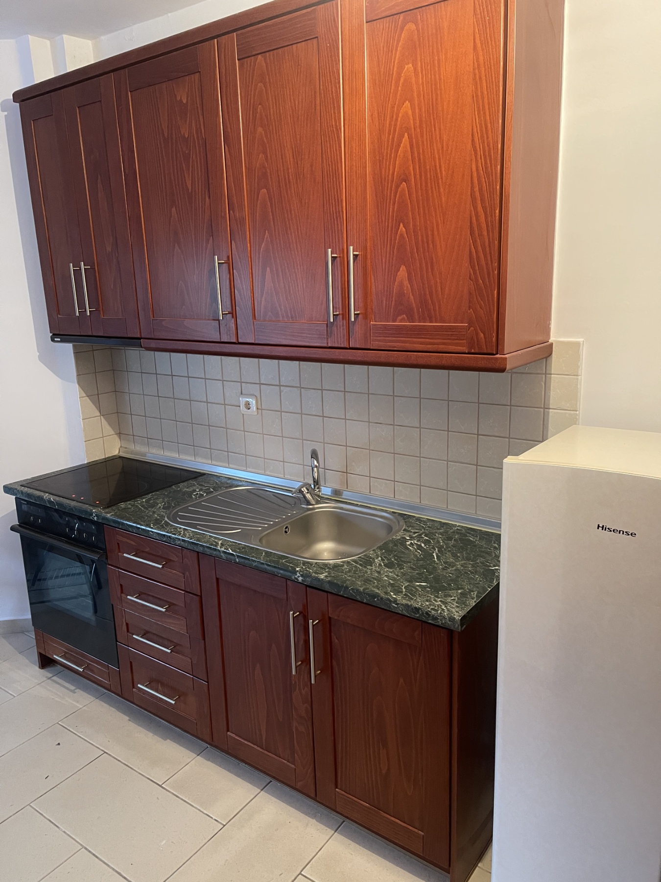 - кујна со рамна плотна и рерна, фрижидер, опремена со прибор и садови за готвење,