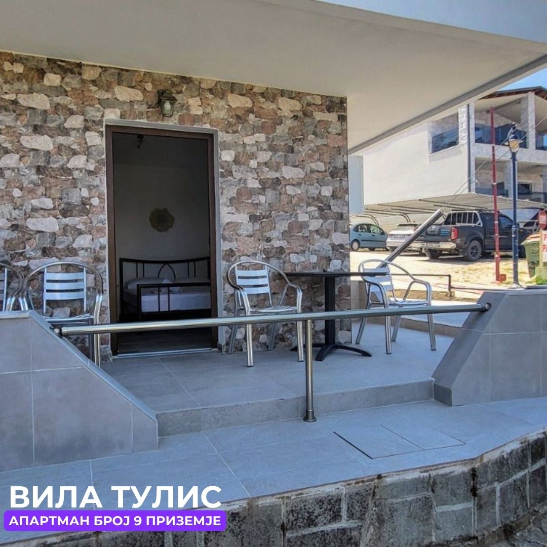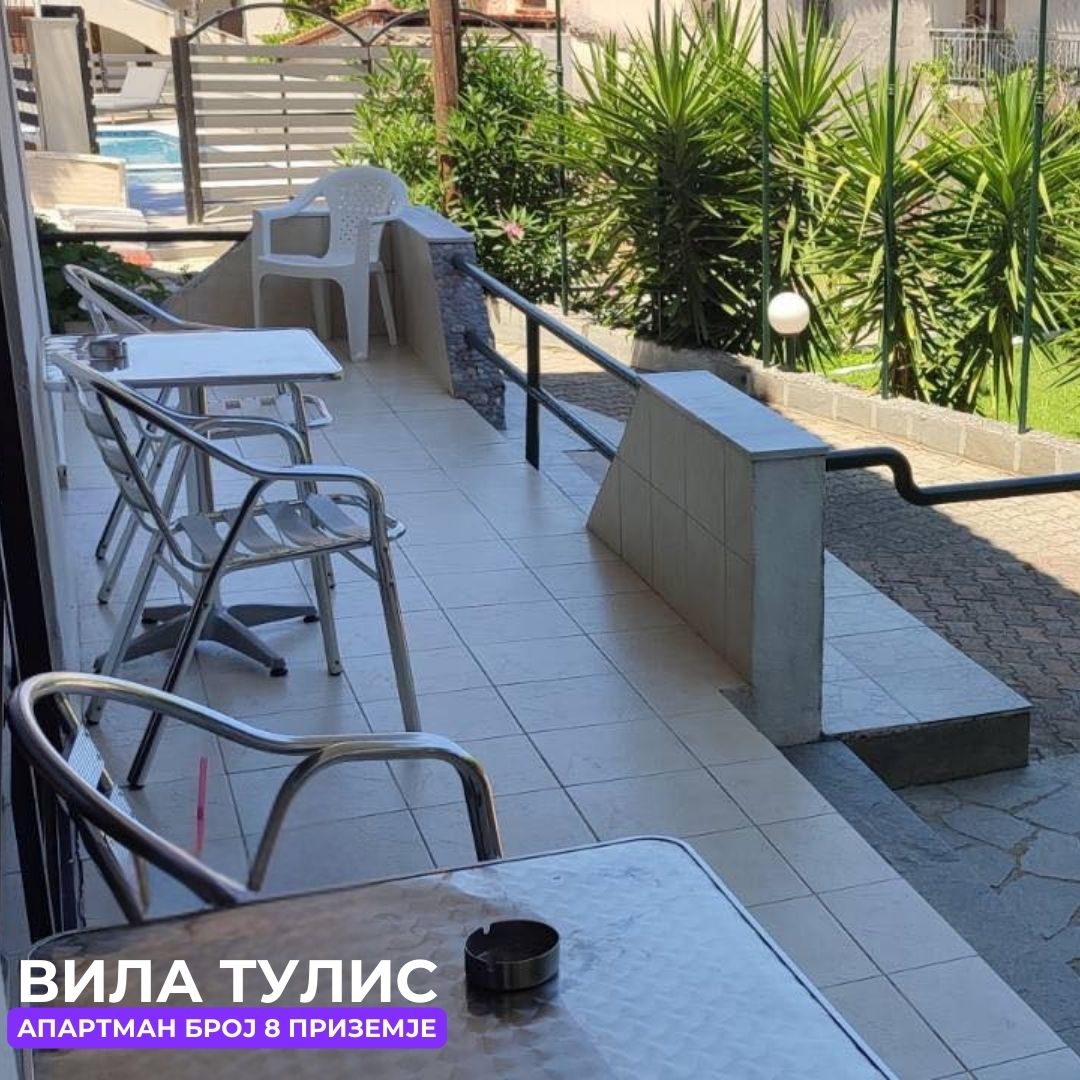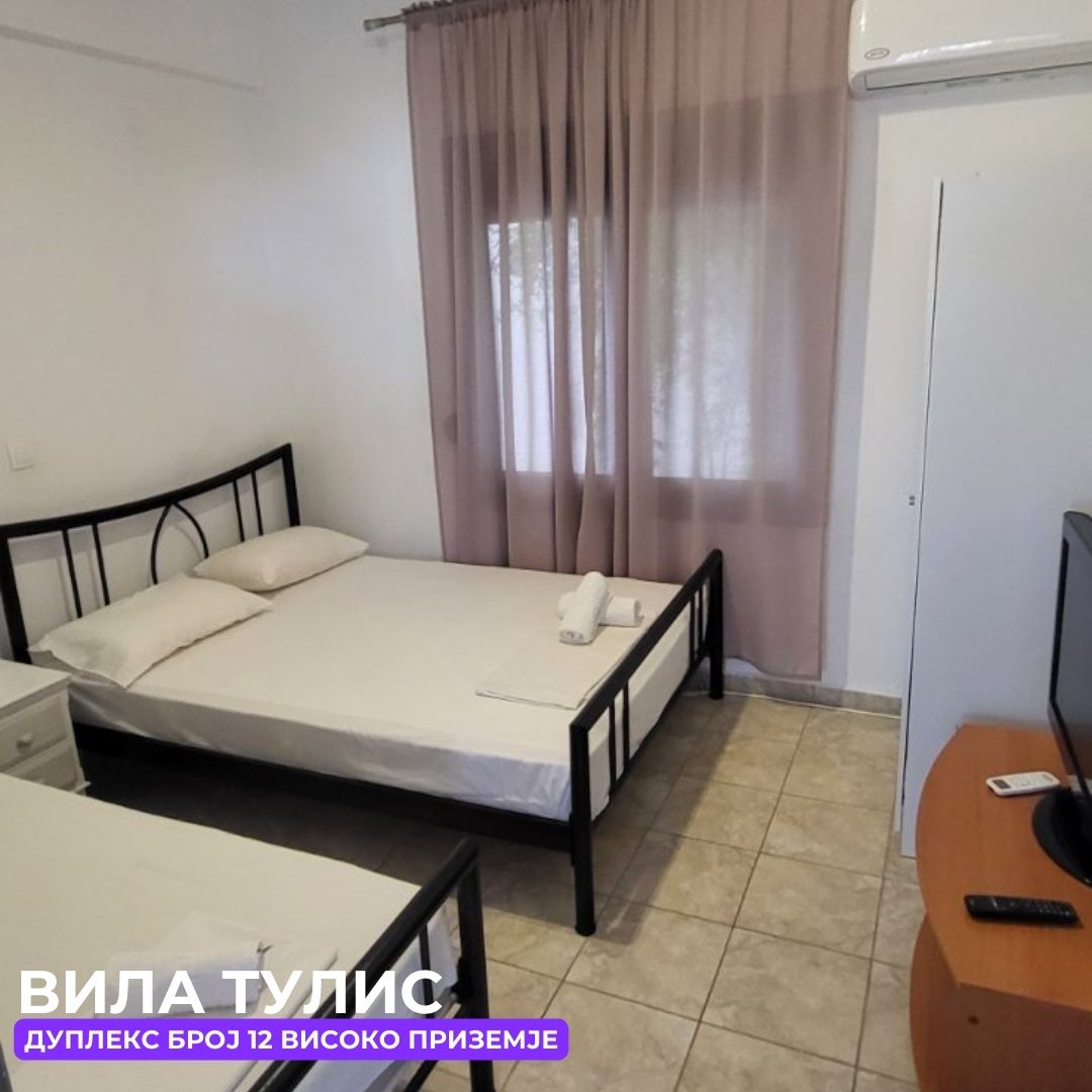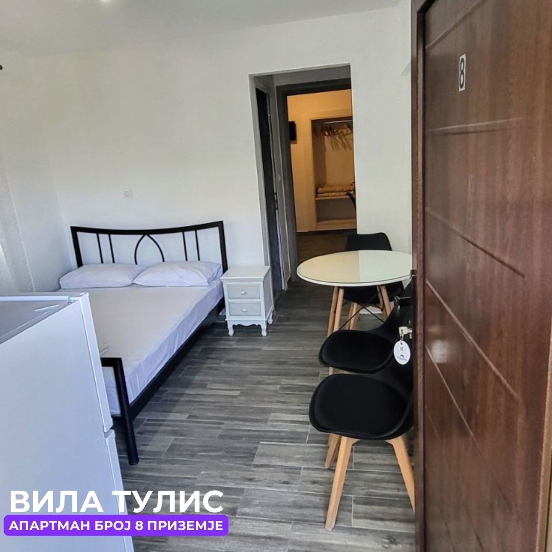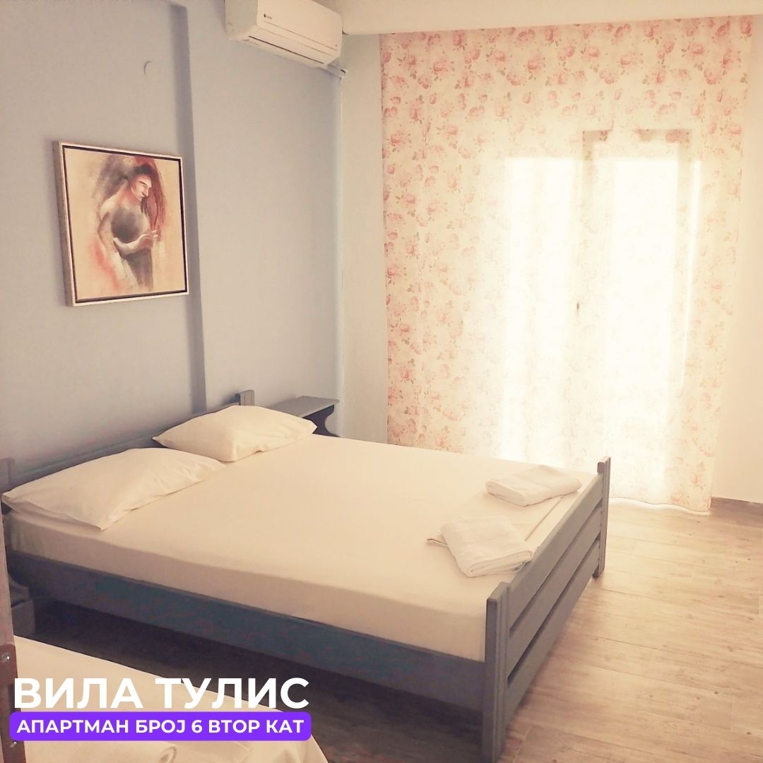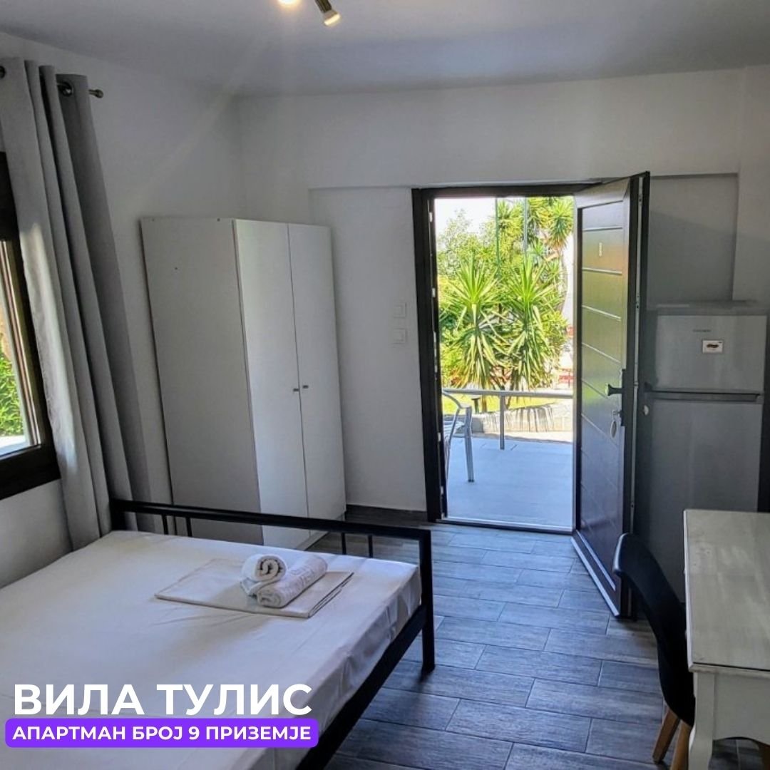 Вила Тулис (целосно реновирана) се наоѓа на 300 метри од плажа во самиот  центар на Полихроно, веднаш над црквата. Вилата располага со апартмани за три, четири и дуплекс апартмани за пет лица, комплетно опремени со кујна, тоалет и тераса. За секој апартман има обезбедено приватен бесплатен паркинг, заеднички двор за дружење на гостите, иралиште за кошарка и приватна теретана. Одличен избор за семејства. Сите апартмани се опремени со клима уред чие користење се доплаќа 35 евра за 7 ноќевања на лице место кај газдите на вилата.