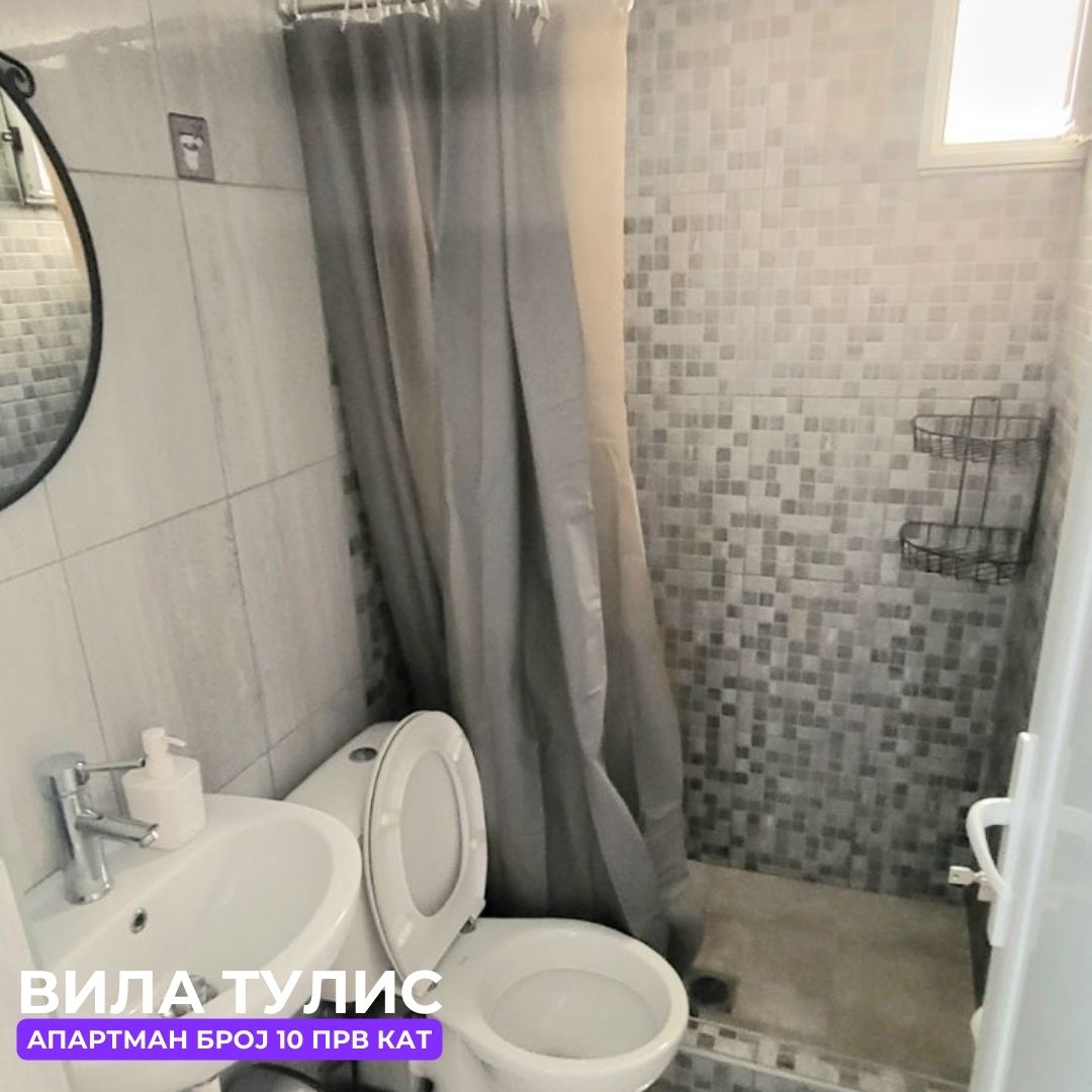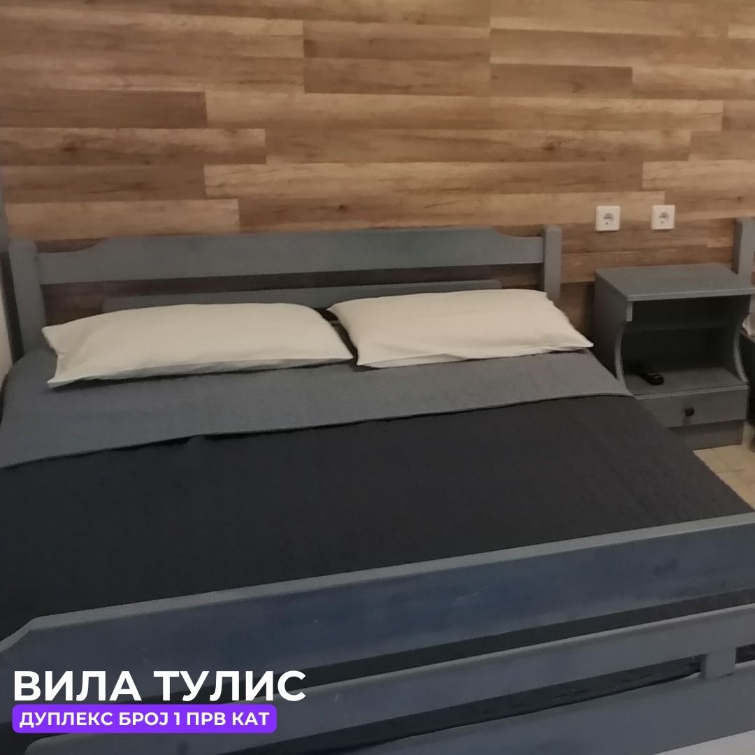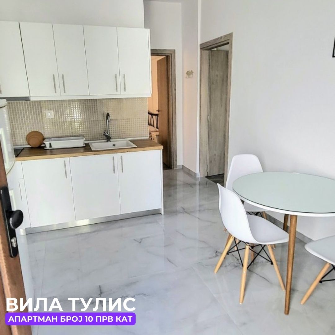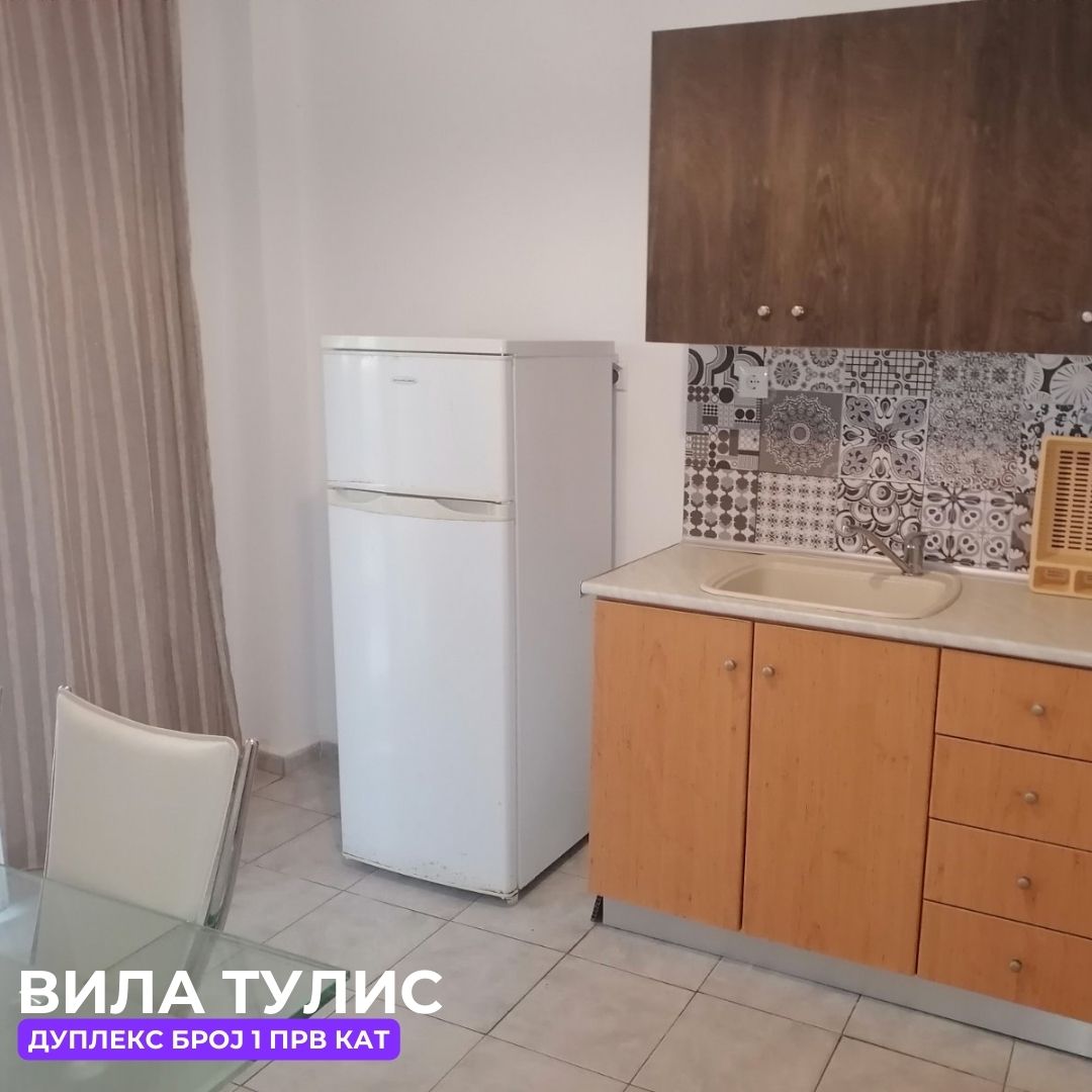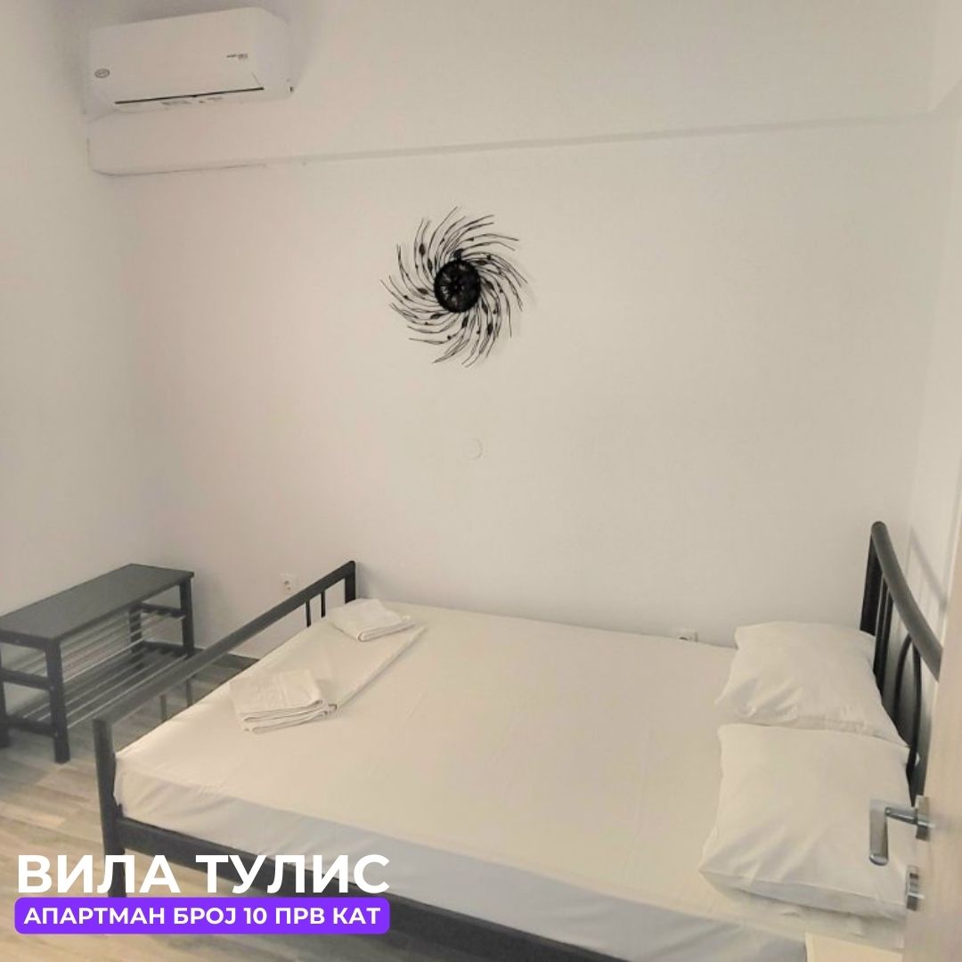 Вила Тулис (целосно реновирана) се наоѓа на 300 метри од плажа во самиот  центар на Полихроно, веднаш над црквата. Вилата располага со апартмани за три, четири и дуплекс апартмани за пет лица, комплетно опремени со кујна, тоалет и тераса. За секој апартман има обезбедено приватен бесплатен паркинг, заеднички двор за дружење на гостите, иралиште за кошарка и приватна теретана. Одличен избор за семејства. Сите апартмани се опремени со клима уред чие користење се доплаќа 35 евра за 7 ноќевања на лице место кај газдите на вилата.