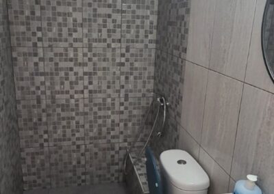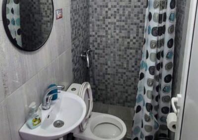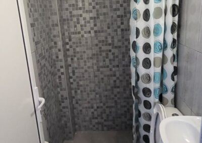 Апп бр. 12 (ЗА 3 ЛИЦА) се наоѓа на неколку скали над приземје. Апартманот има комплетно опремена кујна со голем фрижидер, решо и маса за ручање. Лево е тоалетот, а право соба со брачен кревет и еден единечен каде има тв и клима. Оваа соба гледа према паркингот.