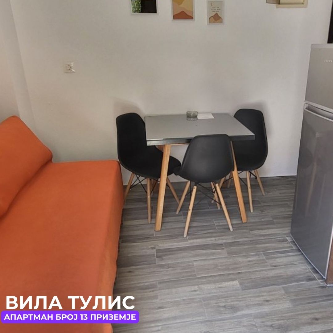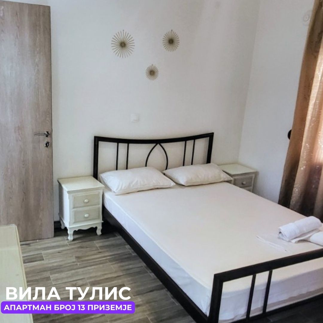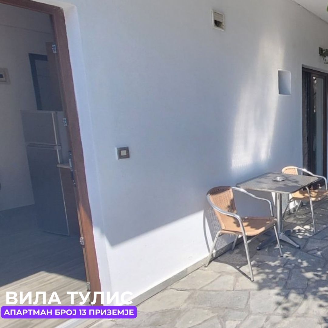 Апп бр.13 (ЗА 3 ЛИЦА) –  се наоѓа на приземје. Апартманот има комплетно опремена кујна со голем фрижидер, решо, маса за ручање и софа за спиење во кујна (препорачуваме на софата да спие дете). Тоалетот е десно, а право се наоѓа спалната соба со брачен кревет, шминкерница, тв и клима. Оваа соба има поглед према паркинг и има посебен влез позади.