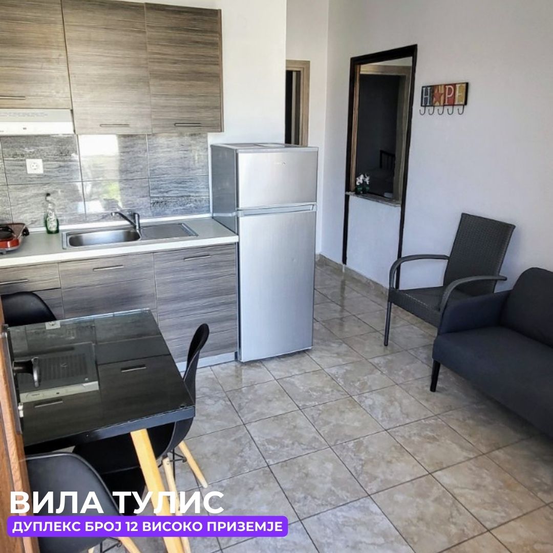 Дуплекс апп бр.10 (ЗА 5 ЛИЦА) – се наоѓа на први кат. Апартманот има комплетно опремена кујна со голем фрижидер, плотна и маса за ручање. Лево се наоѓа тоалетот, а десно има соба со брачен кревет и еден единечен кревет, плакар и тв. Другата соба има брачен кревет и климата. Собата гледа према двор.