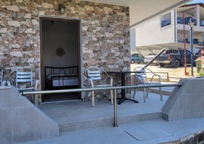 Апп бр.3 (ЗА 4 ЛИЦА) – се наоѓа на прв кат, за оваа соба има посебен влез и има 9 скали за до првиот кат. Голема кујна со единечен кревет, со плотна и голем фрижидер. Право е тоалетот. Има спална со брачен кревет и софа. Климата и тв се во спалната. Има две тераси, една со поглед кон градина и еден со поглед кон двор.