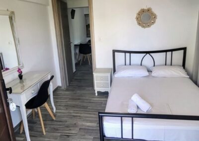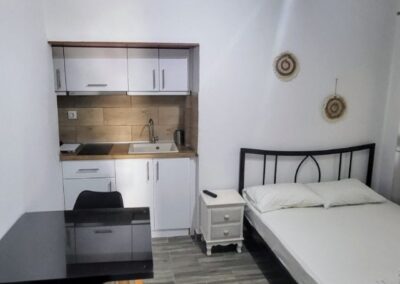 Апп бр.9 (ЗА 4 ЛИЦА)  – се наоѓа на приземје, одма до апартман бр. 8. Апартманот има соба со брачен кревет, плакар и фрижидер (голем). Десно е тоалетот со стандардна големина. Во кујната која е комплетно опремена има брачен кревет, масичка за ручање, плотна со две грејни тела, електрично ѓезве за кафе,тв и клима. Спалната и кујната се одделени со врата. Апартманот е ист како апартман број 8.